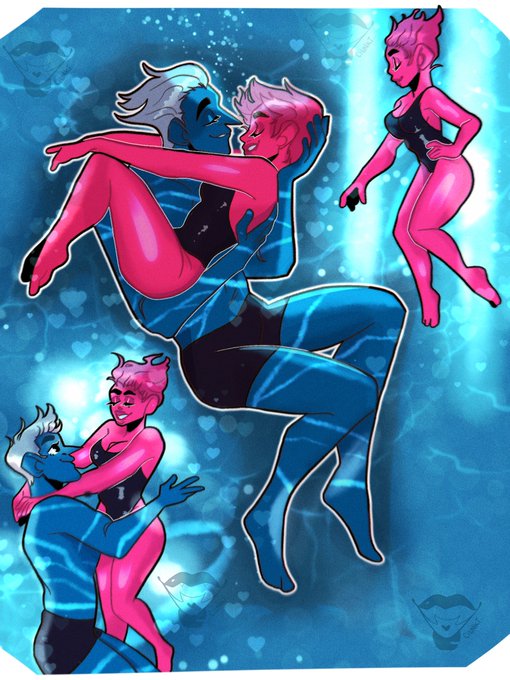 I couldn't decide my favorite swimming recap to draw from the new episode so I just combined them all 😭💓 I really love these two and the background was kinda fun (characters belong to @used_bandaid) #myart #loreolympus #Persephone