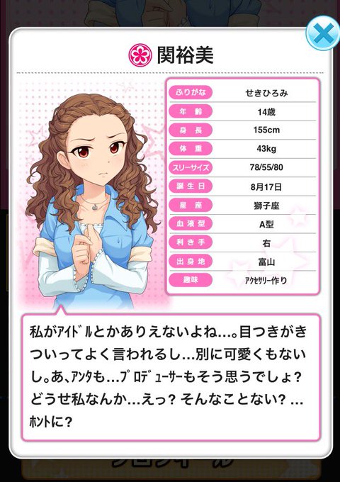 関裕美ちゃんは笑顔ができない自分を変えたくてアイドルを目指しました。一歩ずつ成長していった彼女が、憧れ続けた自分になれた事をどう感じているかをエピソードからも知ることが出来るのでそちらも是非見て欲しいです!