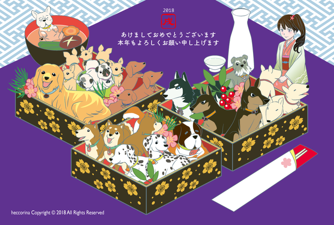 遅れましたが、お年賀イラストです(o^^o)✨