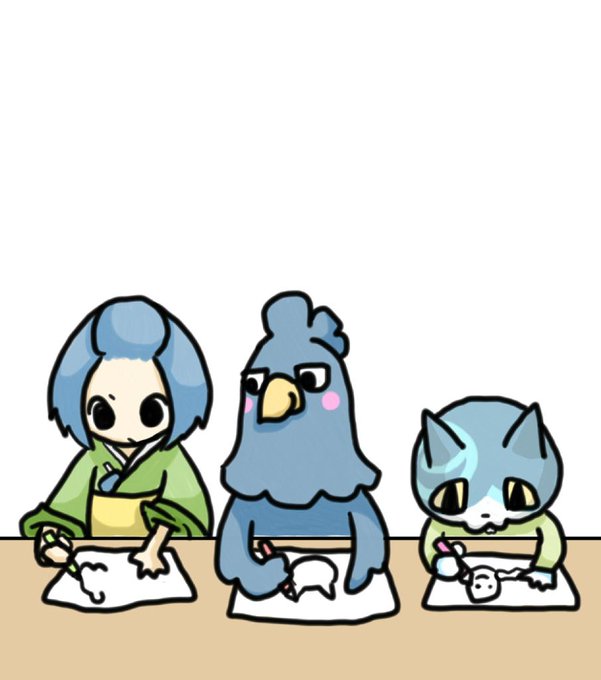 企画絵描いていたらクロベエがきて横で私をチラチラ見ながら同じように描きはじめ、少し経ったらつばがくれ村ニューフェイスのジンペイちゃんもとことこやってきておえかきはじめたのですごく幸せです