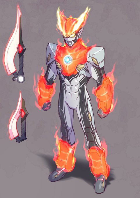 たぶん4回くらい描いてます。これまではO-50出身という設定が出る前に描いていたので今回はそれを踏まえて…。3枚目はエレメンタル非実装の素体状態。冬コミのオーブ本に掲載予定です。