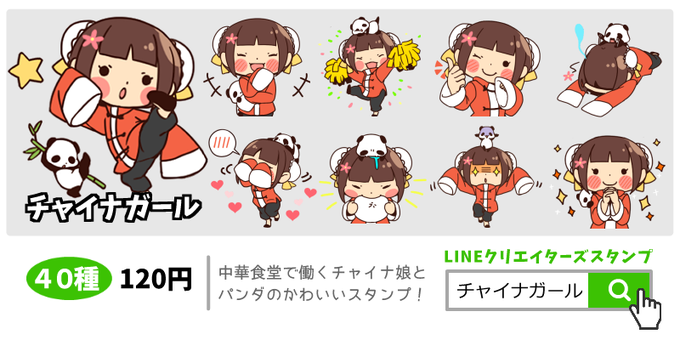 ■新作!■『チャイナガール』チャイナ娘と友達パンダのかわいいスタンプ!少し中国語があるので、勉強や中国気分を味わえたりします♪ #クリエイターズスタンプ #LINEスタンプ