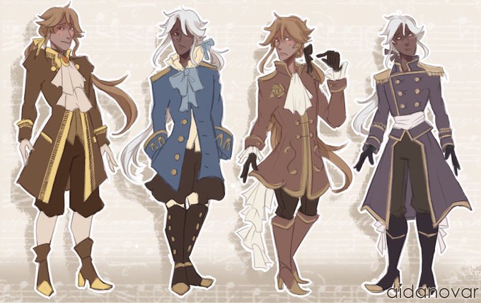 A few more costume design and palette concepts! I really liked the turquoise military coat design too but was advised by lecturers to maybe not give a composer a military coat😅