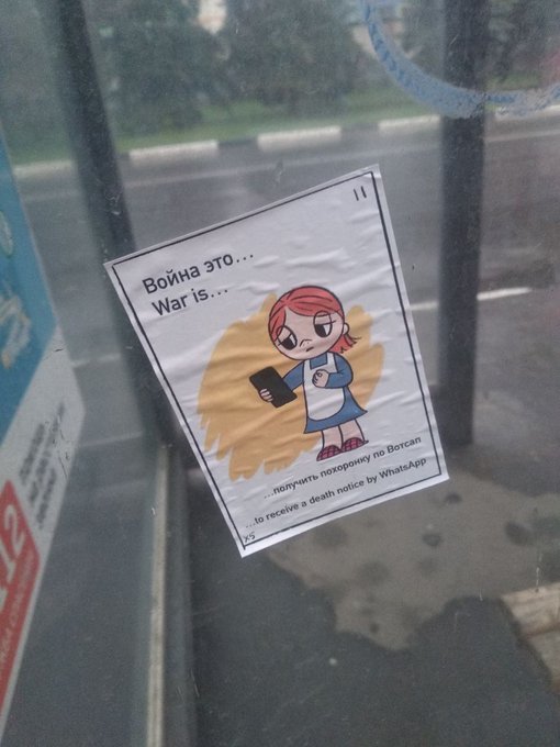 Одна из наших активисток подготовила для антивоенной агитации листовки «War is...», переделав знакомые многим вкладыши жевательной резинки «Love is...».