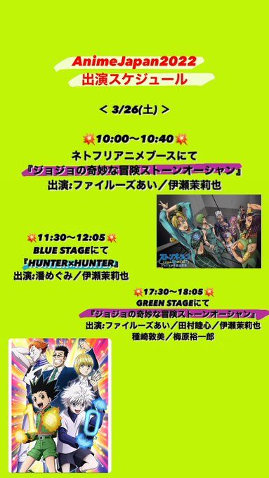 حدث AnimeJapan 2022 القادم سيحمل فقرة خاصة لأنمي HUNTER×HUNTER 2011 بمناسبة 10 سنوات على صدوره ، بحضور "ميغومي هان" مؤدية صوت [غون فريكس] و "ماريا إيسي" مؤدية صوت [كيلوا زولديك]
