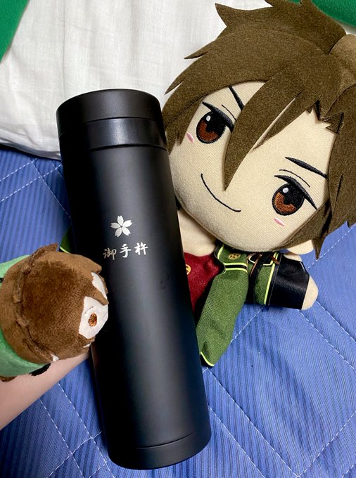 と、友から誕プレ頂きました〜〜〜!!!!おてぎねくんのなまえいりステンレスボトル(!!)と伯爵&独歩ちゃんタペストリー……😭ボトルはこれからもう絶対毎日使うしタペストリーは壁に飾る……うええ嬉しい😭伯爵もまた1番好きな絵でしんどい😭独歩ちゃんかわい😭