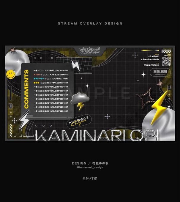 ぶいすぽっ!所属、神成きゅぴ様(@KaminariQpi)のネームロゴ、モーション付き配信画面を制作させていただきました。