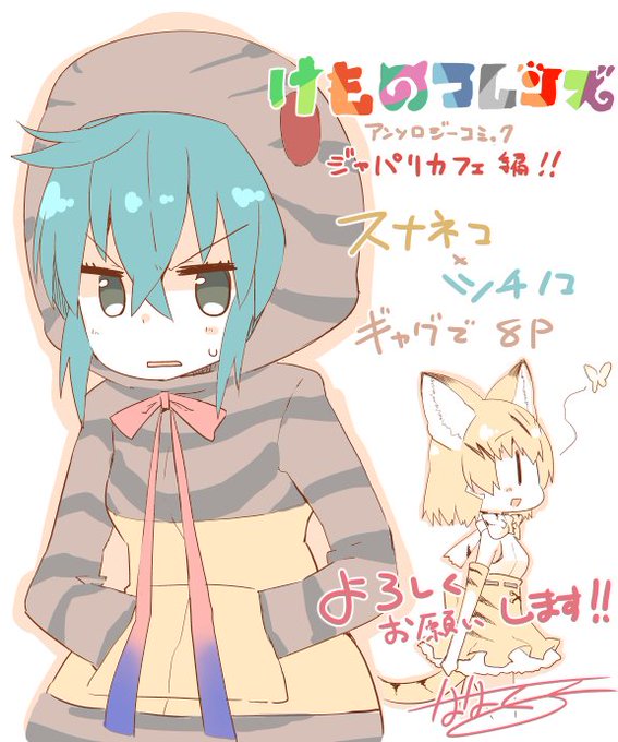 本日4月28日に発売される『けものフレンズ アンソロジーコミック ジャパリカフェ編』にて8P、スナネコとツチノコのギャグマンガ描かせて頂いてます!よろしくお願いします! https://t.co/nEXTwBwfcB