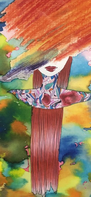 久しぶりに20代前半の時の個展に出していた今もお家に居る絵の子。あの時のまみれていない気にしない手にまた戻りたい!!!この絵の子にもマニキュアのトップコートを使ってます。#絵師さんとつながりたい #絵描きさんと繋がりたい #アナログ絵師 #下書きなし #一発描き