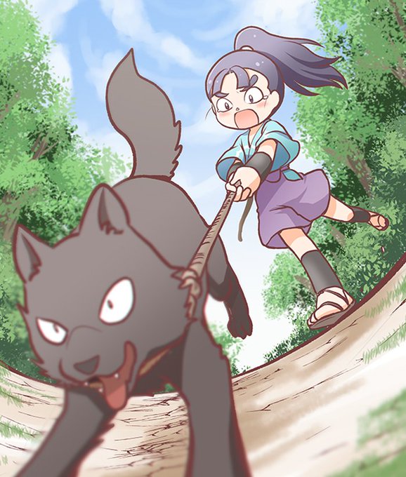 お題:今福彦四郎 #nin_draw 「犬の散歩のさせ方なんてわからないよおおお!!」