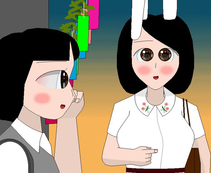 【創作絵】先程ピクシヴに投稿した創作キャラクタ・堀北真希うさぎと史子ちゃん(山下史子)です。