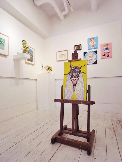 本日より8月。好評開催中の〈夏なんです〉には本日12時より予てより途中参加の予定でしたコマツシンヤさんの作品を展示。さらに田中六大さんの追加作品も!ますます熱くなる本展をお楽しみください。画像は昨日の六大さんです。#ビリケンギャラリー