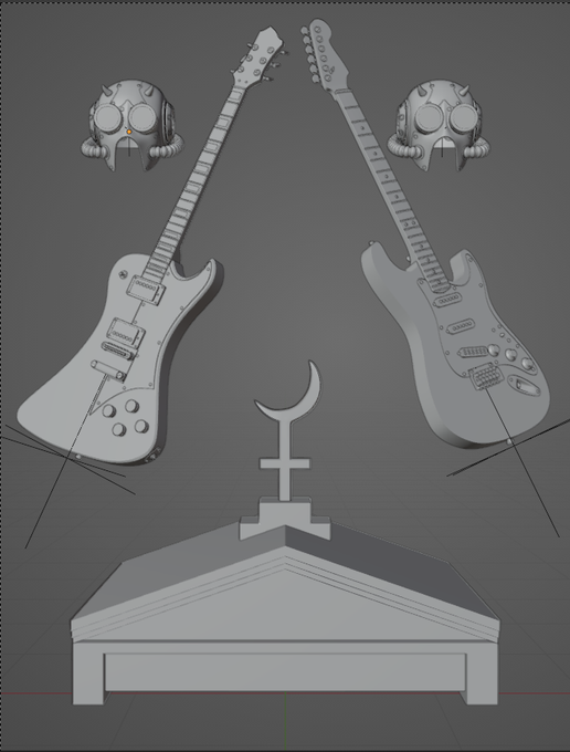 絵上手いですね、って褒めてもらえることが増えたんですが、実はあんまり描いてないという幻滅させる裏側晒してみますね👀手前のそれまで3Dかよ(描いた方が早い)、と我ながら思いますが……描いてないけど作ってるからいいよね!二つのギターの長さが違うので傾ける角度調整は地味に大変だった。 https://t.co/pWG1kxGLId