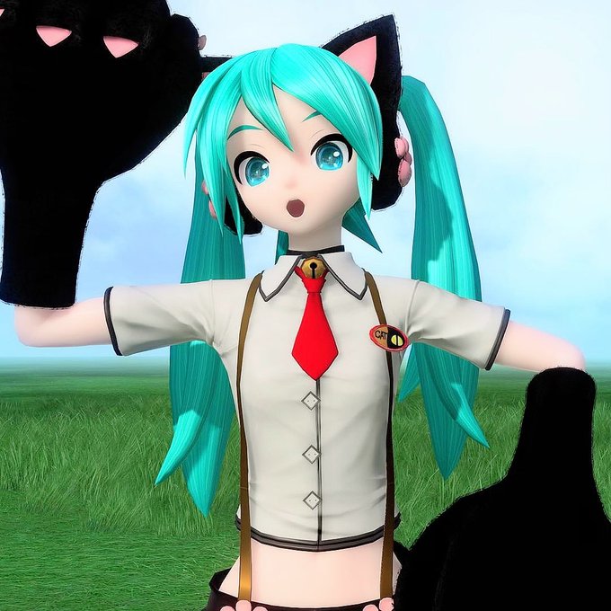 なーおーさんの黒猫ミクさん!ふわふわの黒い猫耳に合わせた、黒いセクシーなドレスが似合っていますね(*´▽`*)💕【https://t.co/xxnChgUl2k】 #piapro #初音ミク