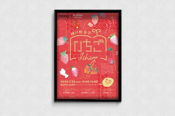 ここ一年ほどデザイン担当してます。はっぱや神戸さんとKIITOさんがしている神戸野菜学というイベントのチラシ。3月はいちご!いちごのイラストは絵コンテストの応募作品です。
