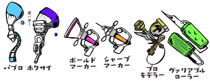 突き指してまともにお絵描きもゲームもできないので、昔から読んでる好きな小説の主人公とブキ載せておきます。