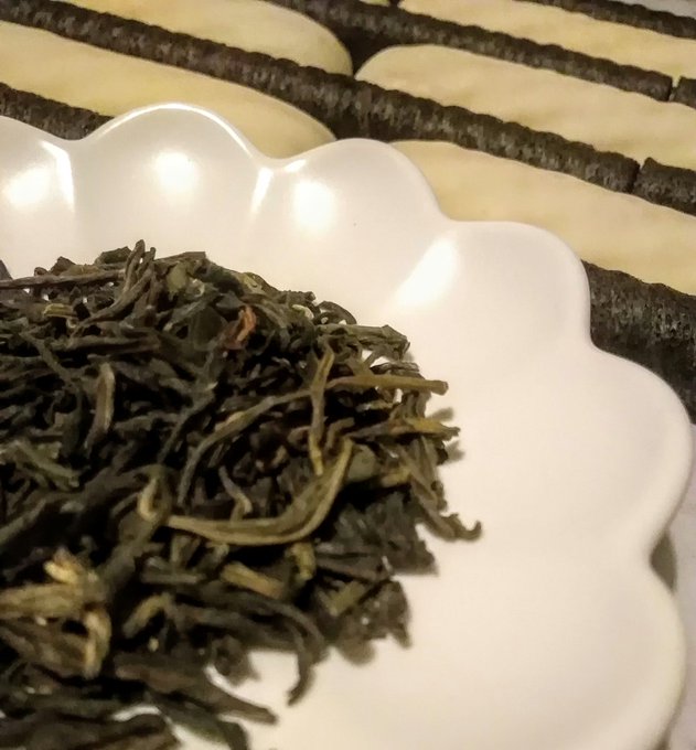 中国緑茶ベースのジャスミンティーに、黒蜜きな粉にココア、ミルクのクッキー。和洋中揃い踏み。