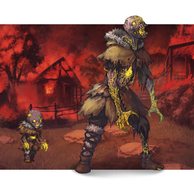 アンデッドです。死体が動く理由がわかりそうなものにしたかったので、腐った内臓周りに寄生している黄色いネバネバが体を操っているというデザインにしました。