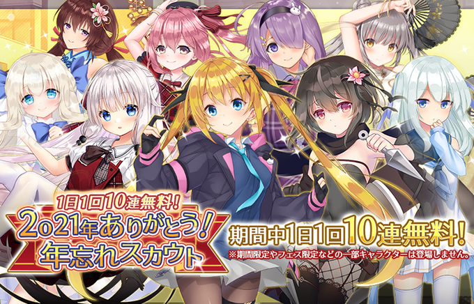 2021年の感謝を込めて1日1回無料10連スカウトを開催いたします!