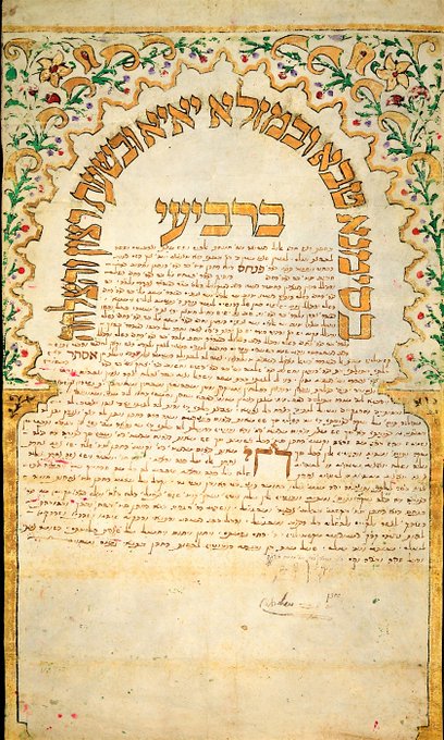 These 19th century embellished Jewish marriage contracts from Calcutta and Tangier are on view in the 'Hebrew Manuscripts: Journeys of the Written Word' exhibition at the British Library #HebrewProject