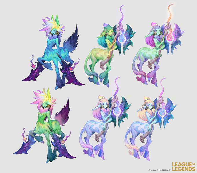 i think lillia’s concepts are actually very close to her final design but i wish riot would have kept the bright colors, a longer and fluffier tail and the haircut of the second picture https://t.co/0tczK2CQwP