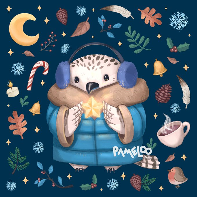 #OWL2021 #owls #owltober #OwlARTYou #ArtistOnTwitter #animalart #WINTER #starsalign #cozy #birb #snowyowl #snow #birbs #illustration
