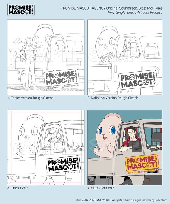 Some WIP samples from the process of creating the Promise Mascot Agency OSTs cover artworks. For both @alphachromeyayo and @ZariganiDotRec 's releases.