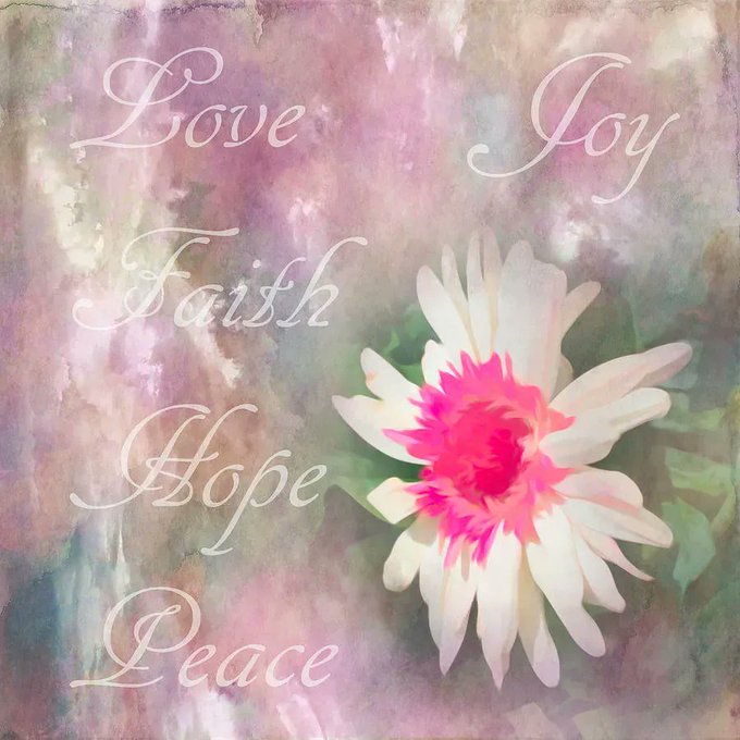 “Gerbera daisy floral on textured background with the words #Love, #Joy, #Faith, #Hope and #Peace.” #flower #flowers #art #wallart #artistsontwitter #SpringForArt #inspirational
