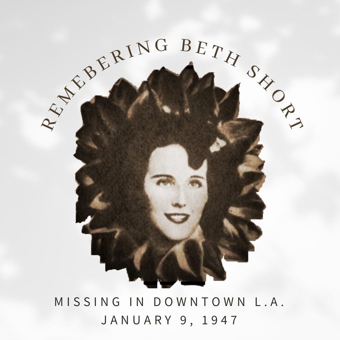 75 years ago today, a 22 year old homeless woman named Beth Short went missing in Downtown Los Angeles. Famous in death as The Black Dahlia, it's her vulnerability and the lost world she illuminates that haunts us more than the unsolved crime. https://t.co/zEbHrCEqsu