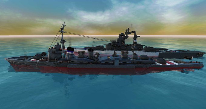 一番艦との違いは、三番砲塔を艦後部に移設し高射砲を多数配置、副砲が三連装砲に換装されたこと