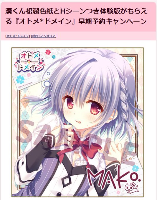 湊くん複製色紙とHシーンつき体験版がもらえる『オトメ*ドメイン』早期予約キャンペーン | 電撃姫.com https://t.co/g1EfI3O49Q