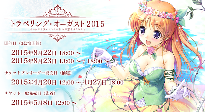 「トラベリング・オーガスト2015 in 東京オペラシティ」のプレオーダーチケットお申込がイープラス、カンフェティにて4/27 18:00まで受け付け中です。よろしくお願いいたします。 http://t.co/Jv1zbDULB4