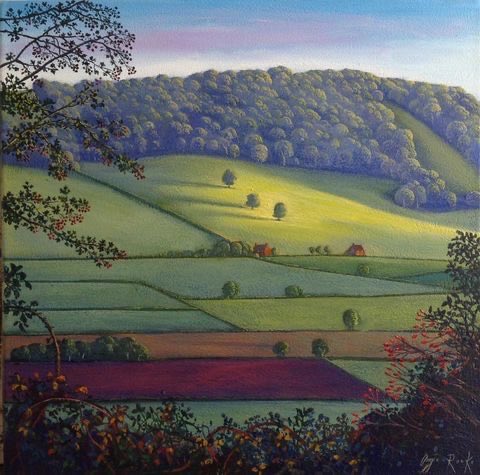 I was so pleased to find the painter Angie Rooke. She lives in a village at the edge of the Somerset Levels with a view of Glastonbury Tor and is inspired by the scenery all around her