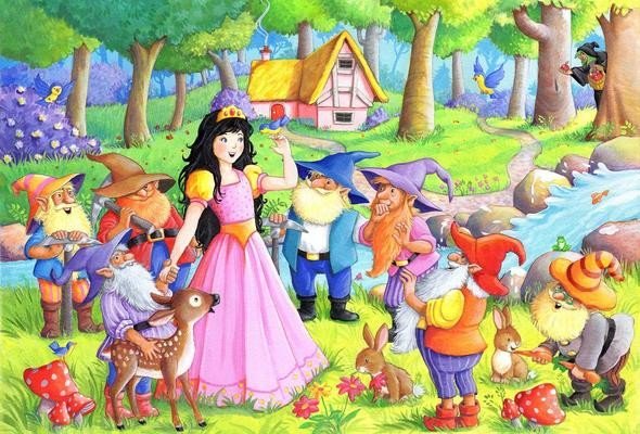 Snow White and the Seven Dwarves #illustration by Gill Guile https://t.co/5YyArL1nU8 #kidlitart