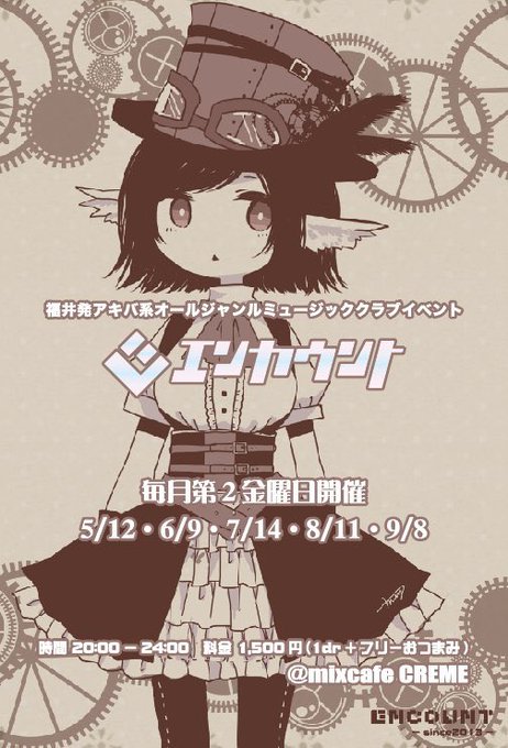 次回のENCOUNTは8/11金曜日20時より福井市CREMEにて開催!