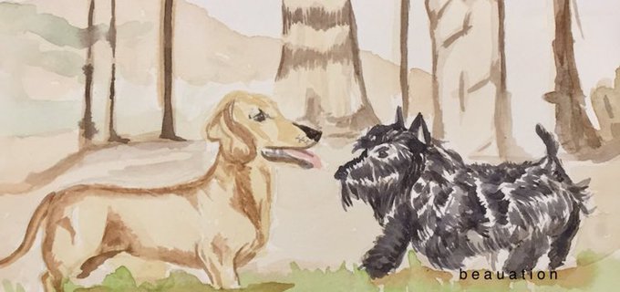 Tonight on #Twitch I painted Daphne the #dachshund & Fancy the #ScottishTerrier inspired by #QueenVictoria ’s #watercolour paintings of these dogs! Friday we celebrate our stream-aversary! We took the garden party over to @helmartwork now LIVE on Twitch!