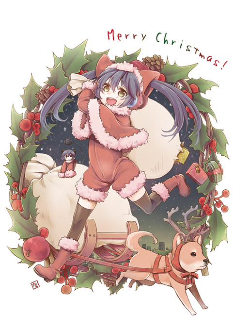 メリークリスマースです!! しかし8月の絵です!!! ゆあさん社員さん(@nulltix)の 艦これデフォルメカレンダー合同で描かせていただきました(OvO)!