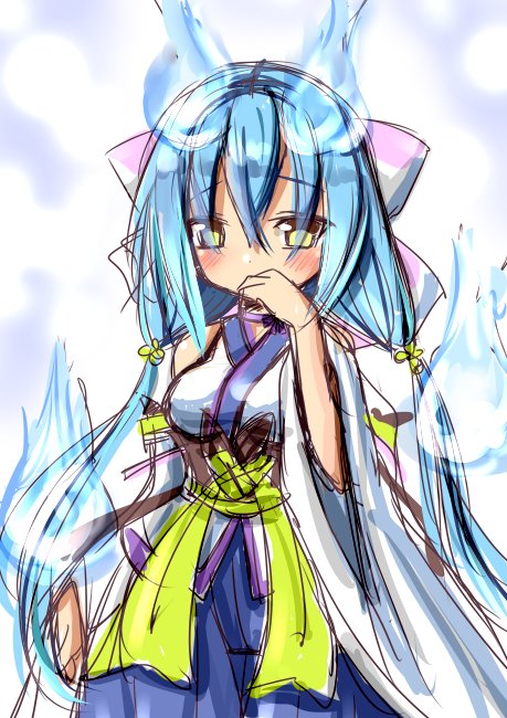 ECOニュ~で、 モーレツに藍ちゃんを集めてるお庭があったなぁ とか思い出しながら描きましたよ (^_^;) #ECO版深夜の真剣お絵描き60分一本勝負