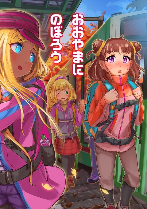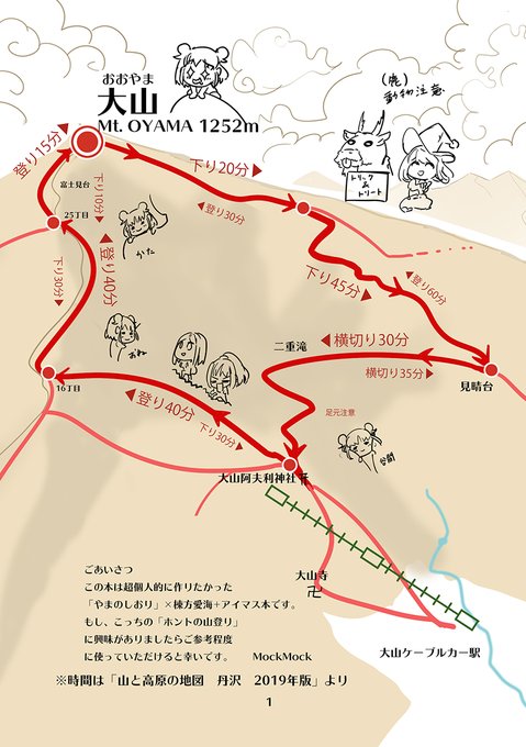【C97】新刊サンプルになります。今回はお山のしおり(遠足のしおりのようなもの)+だいたい4コマフルカラーお手頃サイズのA5本です。愛海ちゃんとしゅがはとライラさんがいっしょに神奈川県に本当にあるお山「大山(おおやま)」に行く話です。 #C97新刊