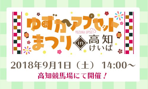 いよいよ明日9/1(土)は高知競馬場にて「ゆずかアプセットまつり in 高知けいば」開催!出演声優によるトークショーやお渡し会、協賛競走など沢山の催し物を実施予定!イベントは基本無料でご参加頂けます!(高知競馬場への入場料が別途かかります) https://t.co/oawIMUOYWu #ゆずかアプセット