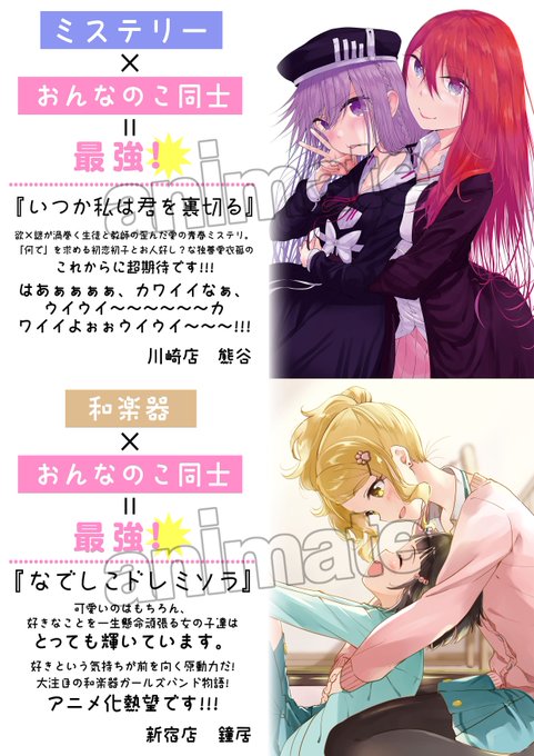 【週明けは百合部各店に集合⑤】もいっちょPOP紹介です!!『○○』×『おんなのこ同士』の○○の部分もしっかり描かれているので、スポーツ好き、ミステリー好き等、各ジャンル好きの方、新規で読んだことないもの読んでみたい!という方にもおススメですよ~! #アニメイト百合部