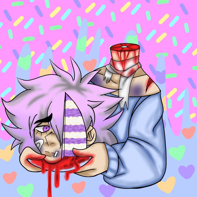 A small drawing of a headless Faux Felix and his costume with more blood and ink than ever from it too