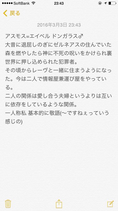 最初のあだ名は変態紳士。ハイになると口調が変わる。最近はよく仕事で表世界に出てる。疲れると無言でレーヴに甘え出す。