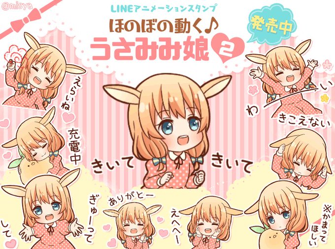 うさぎ耳の女の子が元気にかわいく動くスタンプ第2弾!