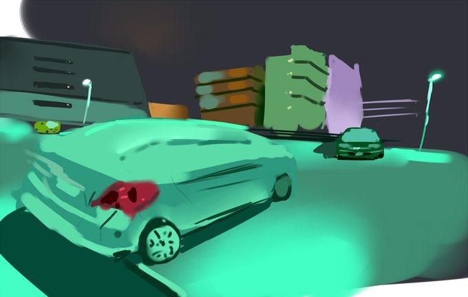模写 夜の路地描くので水銀灯のある風景から簡単に模写して色の確認。水銀灯がもつ光の波長は赤の波長まで到達しない気がします。よって目で確認した際の波長は赤のまま認識されそれ以下は水銀灯の青緑色の影響をうけて変色している、かも。