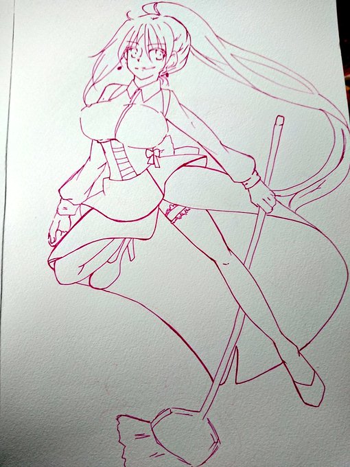 メイドの日らしいので下描き中の膝君に着せた。 女装注意💃