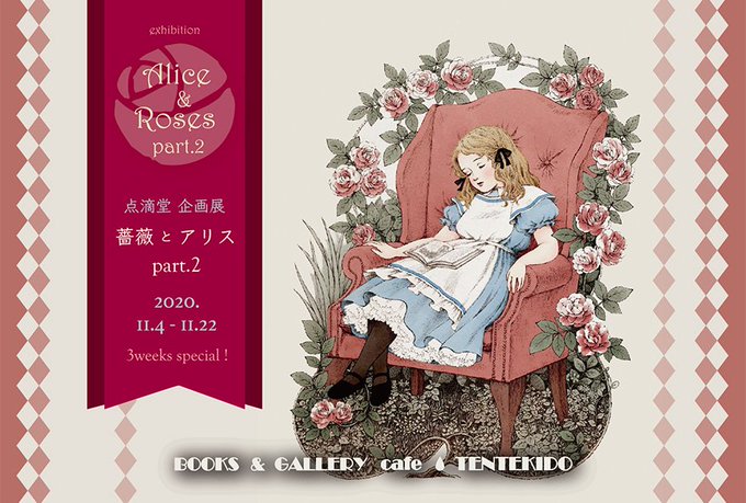 今日、夜が明けてお昼頃からは、点滴堂企画展『薔薇とアリス part.2』が始まります🌹DM表の素敵なイラストは、せきぐちよしみさん作✨