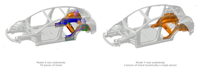 またテスラが出願した特許によると、将来は車体全部を一発で作れるらしい