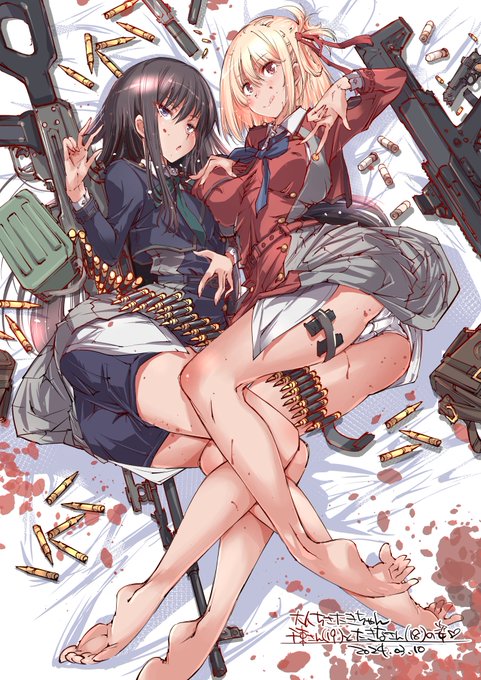コラボしないかな~ぷりぷり😌🙏その② #リコリス・リコイル #リコリコ #井ノ上たきな (あえての非トランクス。PKMの構え方調べたら寝そべりと直立でエロくなかったからスタンド延長して中腰です)