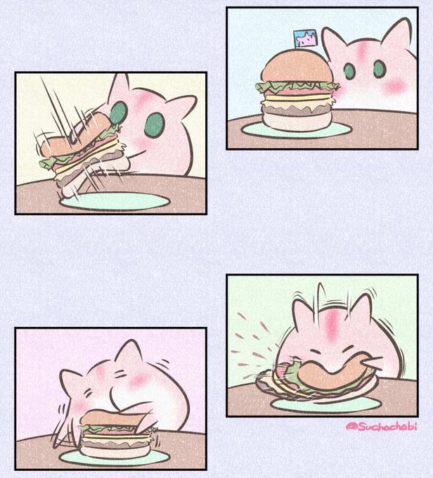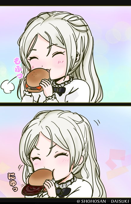 @yukar_aziaさんより「ハンバーガー(デカイやつ)にかぶりつくあかぃさん」です。